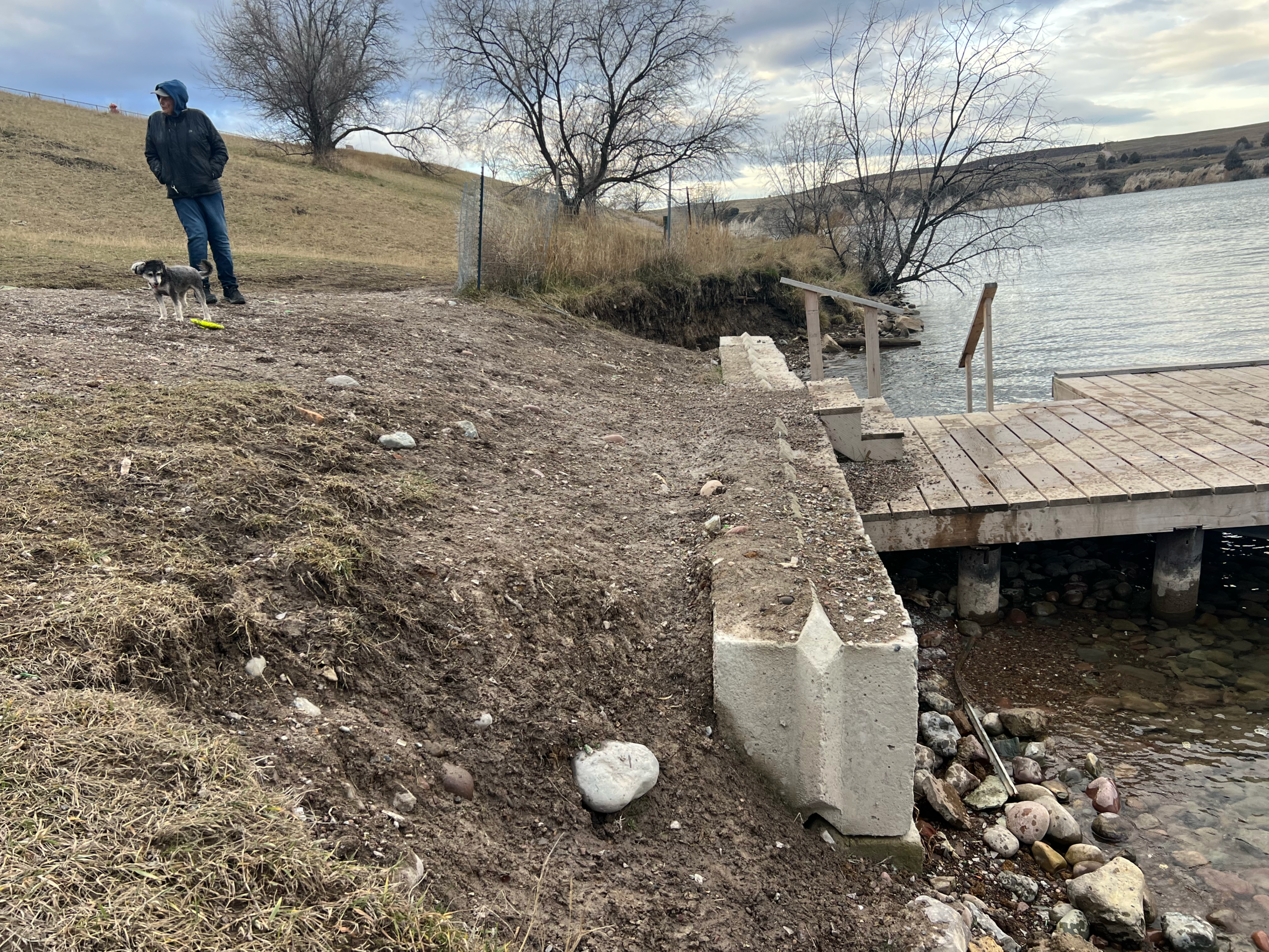 The approach to the dock is too steep for many, posing a slipping hazard. It will be terraced to allow steps to a more level approach.